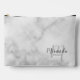 This design features personalised bridesmaid's name in grey modern script font style and monogram in light grey modern script font style as background with title in grey modern sans serif font style on white marble background.