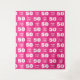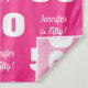Personalised modern and bold step and repeat tapestry backdrop in pink and white for a woman's 50th birthday party. Add her name with a script font for unique photo prop decorations.