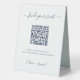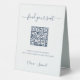 Modern and elegant design printed Navy Blue Calligraphy Script Horizontal Wedding Please Find Your Seating Chart QR Code Sign that can be customised with your text. Check out the Graphic Art Design store for other products that match this design! If you need help or matching items, please contact me. zazzle.com/store/graphicartdesign