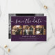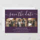 Elegant purple wedding photo save the date cards with modern calligraphy. Easily personalise this card with your images and wedding details including a wedding website if applicable. Customise to any colour.