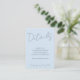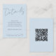 This wedding invitation enclosure card in soft blue features a qr code link to your website.