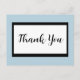 A simplistic script thank you postcard in black and white.  The blue background color can be changed to any color that you prefer.