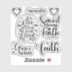 Customisable name Christian faith stickers with simple script quotes and Bible verses with hearts.