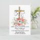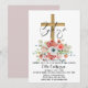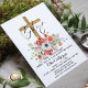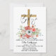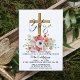 Script Watercolor Floral Cross Baptism Invitation features a simple cross accented with red, coral, blush and white flowers and greenery with your Baptism Invitation information below. Personalise by editing the text in the text boxes provided. Designed by ©Evco Studio www.zazzle.com/store/evcostudio