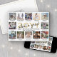 Script What a Year! 12 Photo Collage Gold & White Holiday Card