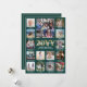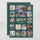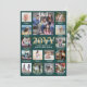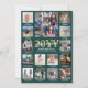 Script What a Year! 15 Photo Collage Green & Gold Holiday Card