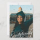 This graduation announcement features a full bleed horizontal photo, hand lettered text, and a space to include your graduate's name and school. Change the colour on the back to match your school colours!