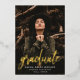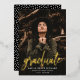 Simple graduation announcement featuring the graduate's photo with "graduate" in real gold foil script. Personalize the front of the photo graduation announcement by adding the graduate's name, school name, and graduation year. The announcement reverses to display a pattern of white sprinkles with a black background or color of your choice.
