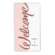 Scripted welcome blush pink wine bottle label