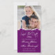 The words "save the date" are written in a casual calligraphy on this photocard. An ornate Victorian border frames your photograph while your customised information is shown off against a deep purple background. Available in alternate colours.