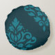 Scroll Damask Art I 2Way Dark & Mid-Teal Round Cushion