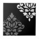Scroll Damask Art I Black Grey White Tile