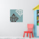 Scroll and leaf damask with brown and cream colour detail on a light teal background in a modern style art print.