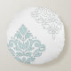 Scroll Damask Art I (line) Duck Egg Blue Grey Wt Round Cushion