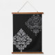 Scroll Damask Art I White Line Grey Black Hanging Tapestry