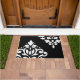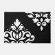Scroll and leaf damask in white detail on a black background in a modern style art print.