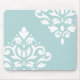 Scroll Damask Art I White on Duck Egg Blue Mouse Mat