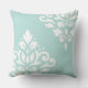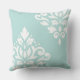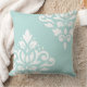 Scroll and leaf damask with white detail on a light teal background in a modern style art print.