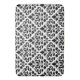Scroll and leaf damask in a vintage style pattern, with black detail on a white background.