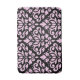 Scroll and leaf damask in a vintage style surface pattern design, with light pink detail on a black background.