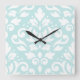 Scroll Damask Lg Design White on Duck Egg Blue Square Wall Clock