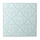 Scroll Damask Lg Ptn White on Duck Egg Blue Tile