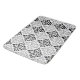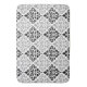 Decorative scroll and leaf damask surface pattern design in black and grey detail on a white background.