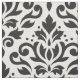 Scroll and leaf damask in a vintage style repeat surface pattern design, with black detail on a white background.