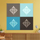 Scroll Damask Pattern Squares Teals Browns White Canvas Print
