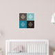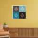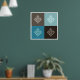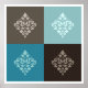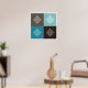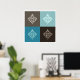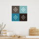 Scroll Damask Pattern Squares Teals Browns White Poster