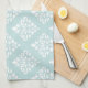 Scroll Damask Ptn (2) White on Duck Egg Blue (B) Tea Towel