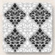 Scroll and leaf damask surface pattern design with black and white detail on a light grey background.