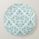Scroll and leaf damask in a vintage influenced pattern, in teal colour detail on a background colour of your choice.