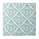 Scroll and leaf damask in a vintage influenced pattern, in teal colour detail on a background colour of your choice.