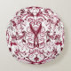 Scroll Work, Raspberry Red-Round Throw Pillow