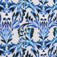 Digitalised, photo editing, transformed a photo image, into this Abstract, graphic design, with intricately, scrolled, leaf patterns-in vivid, colours of blue, green, black, and white.