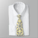 Neck Tie with an ornate pattern in yellow, navy blue, and white. Detailed and intricate scrollwork design.