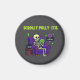 Stick it where your sanity used to be. This magnet features a skeleton deep in digital denial, lounging in a purple armchair with glowing phone in hand, while a ghost floats by asking the real question: “STILL SCROLLING?” Complete with a steaming mug labelled “99% Scrolling, 1% Awareness,” this design is perfect for anyone who doom-scrolls through dinner, deadlines, or domestic chaos. Add it to your fridge, locker, or workspace and let the judgmental ghost do the talking.