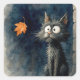 Scruffy Black Alley Cat With an Autumn Leaf Square Sticker