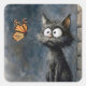 Scruffy Cat Staring at a Monarch Butterfly Square Sticker