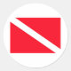 Round Sticker with the SCUBA Diving Flag. Stick it where you want... just be careful not to stick it where it may wash off. You salties know who I'm talking to. This is customisable. Put your name or Dive Shop logo on this sticker.