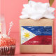 This Filipino flag is finished with rough textures and scuff marks. This unique flag of The Philippines pattern has an old worn out feel that gives it a stylish look. This patriotic design is perfect to show off country pride.
