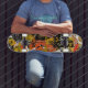 Retro style 80s graffiti spray paint artwork onto skateboards.