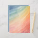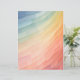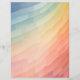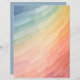 A vibrant gradient of colours transitions from cool blues at the top, through greens and yellows, to warm oranges and pinks at the bottom. The composition is made up of geometric shapes that form a pattern of curved lines, creating a sense of movement and depth.