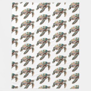 Vibrant Watercolor Sea Turtle Fleece Blanket