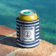 Sea Anchor Captain Add Name or Boat Name Can Cooler - Navy Blue and White Stripes.