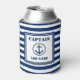 Sea Anchor Captain Boat Name Blue and White Stripe Can Cooler