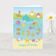 Cute sea animals - whale, penguin, fish, starfish, turtle, coral, seahorse, crab, jellyfish, seal Kids Birthday Greeting card.