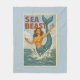 Sea Beast Retro Mermaid | Funny Coastal Beach Blue Fleece Blanket