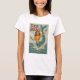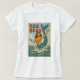 This Sea Beast mermaid is making a splash as she leaps exuberantly out of the water, with her jewel colored tail and shell bra. The humorous twist on retro coastal poster art was created to make you smile. This lighthearted t-shirt is a great way to add seaside vibes to your outfit. | Vivid printing is recommended for non-white garments.